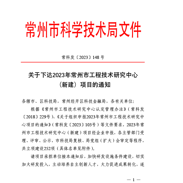 2023常州市工程技术研究中心