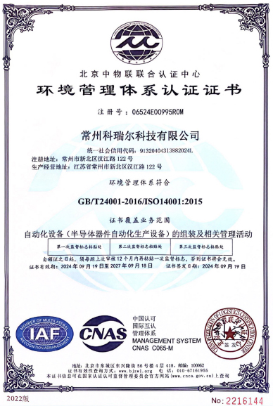 环境管理体系认证证书