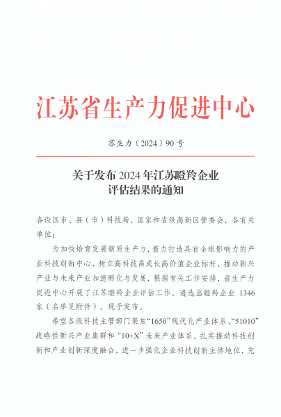 2024年江苏省瞪羚企业