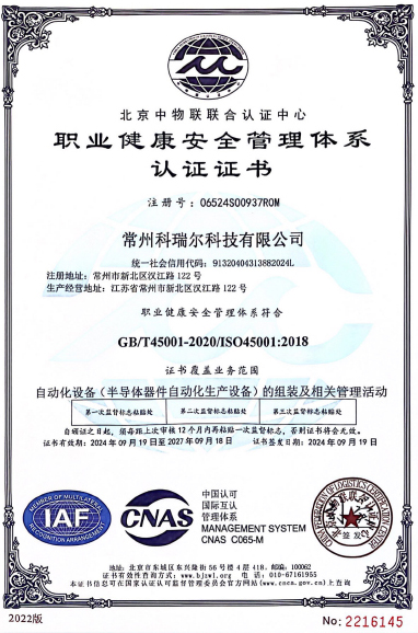 职业健康安全管理体系认证证书
