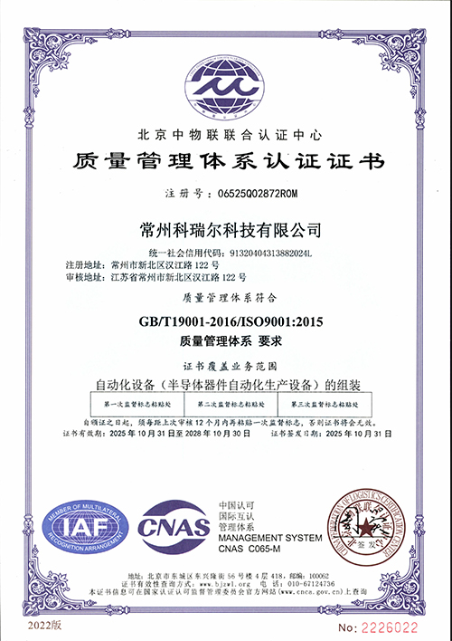 质量管理体系认证证书